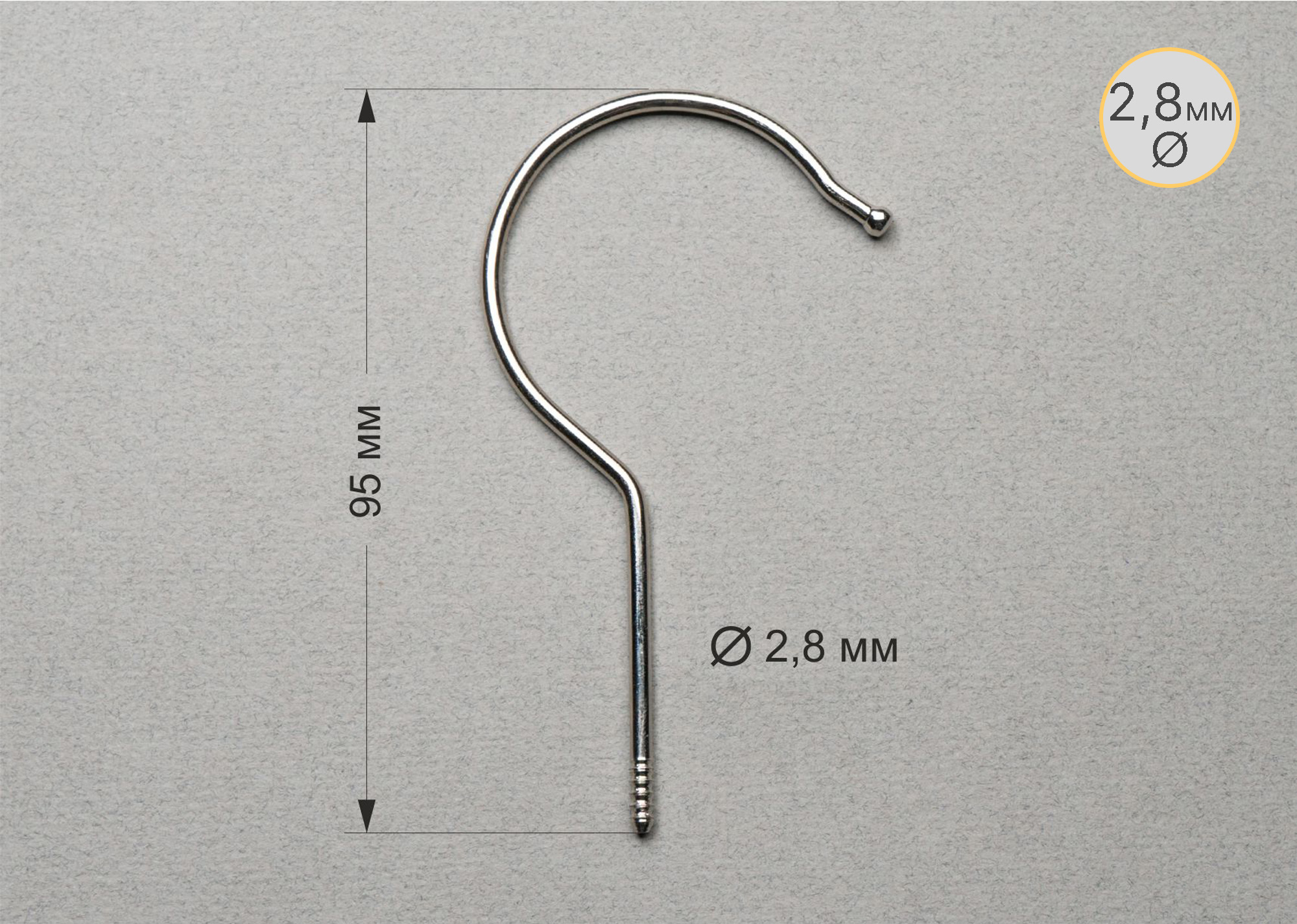 Крючок никель, диаметр 2.8 мм
