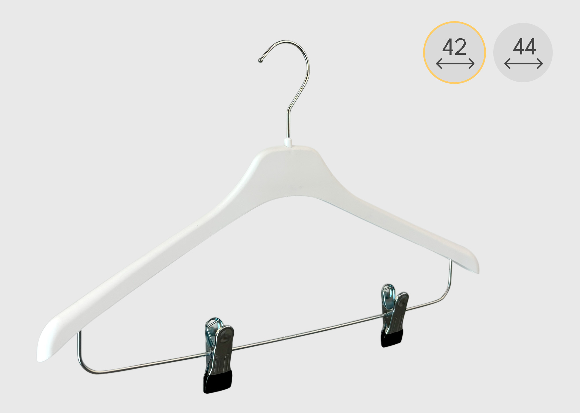 Подходит для всех видов верхней одежды, в том числе и для тяжелой одежды (костюмы, куртки, пальто). Вариант вешалки с перекладиной и прищепками подходит для комплектов одежды, брюк и юбок.