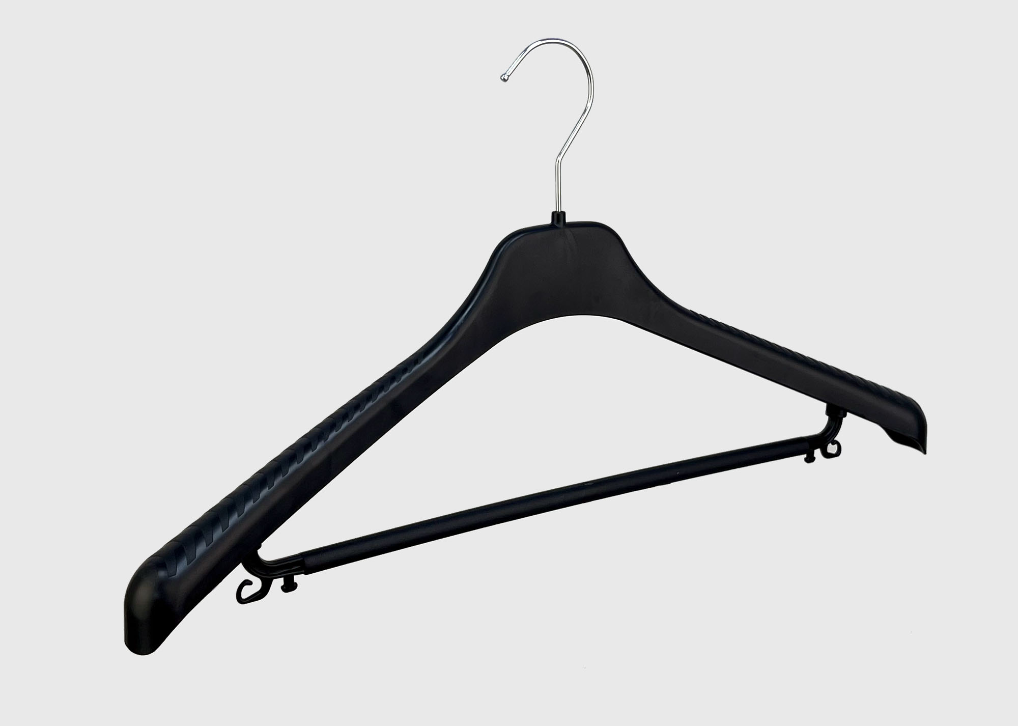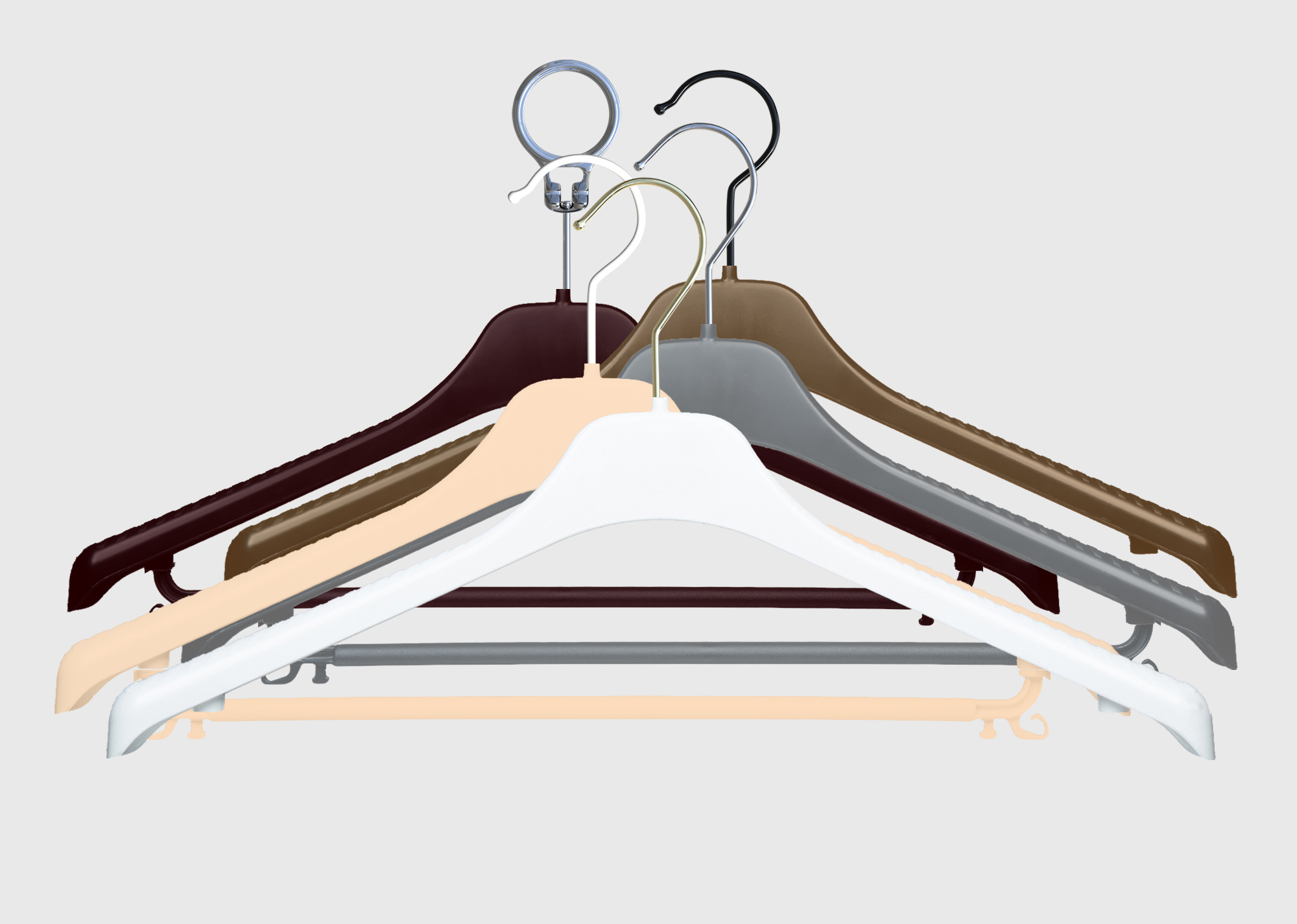 • Длина (размер): 38, 42, 46 • Перекладина/Без перекладины • Цвет: черный, белый, серый, темно-коричневый, коричневый, бежевый. Другие цвета при заказе от 5000 штук. • Поворотный металлический крючок разных типов • Бархатное покрытие (флок) – вешалка полностью, 1/2 плеча, перекладина • Логотипы • Поролон на перекладине • Силиконовый держатель на перекладине