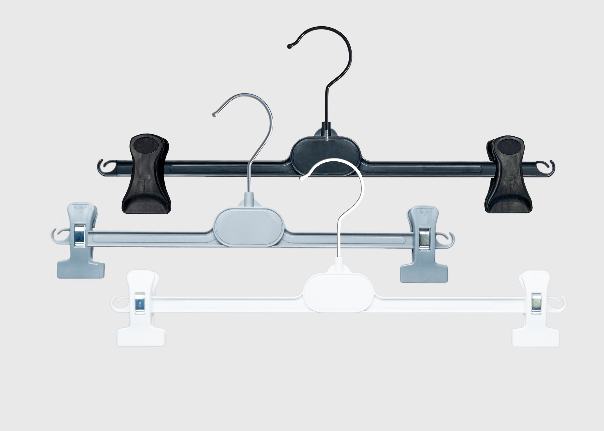Вешалка для брюк и юбок с пластмассовыми прищепками и металлическими зажимами для прищепок. Возможны 2 вида прищепок-стандарт и люкс, и 2 вида зажимов-серебро и золото.