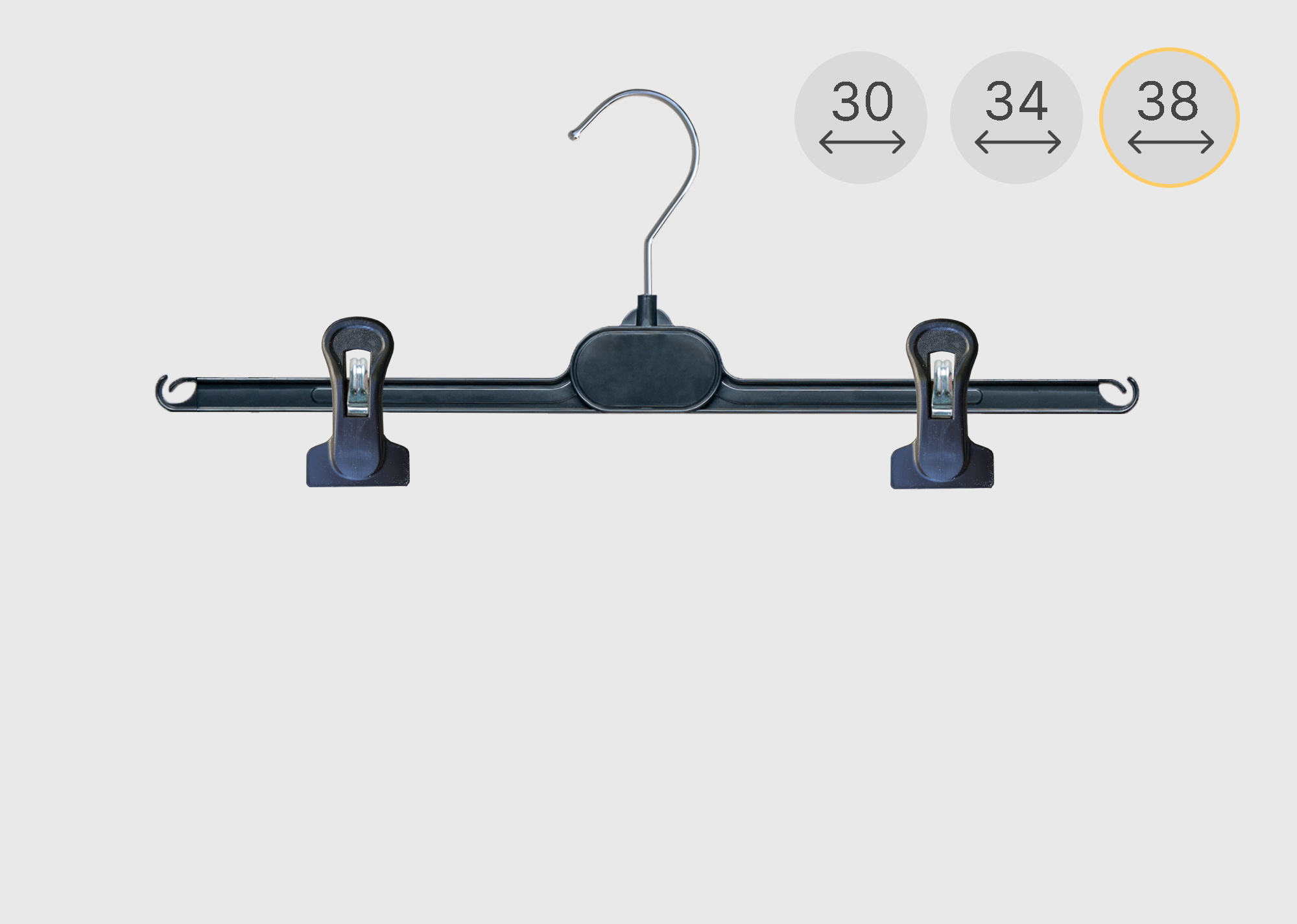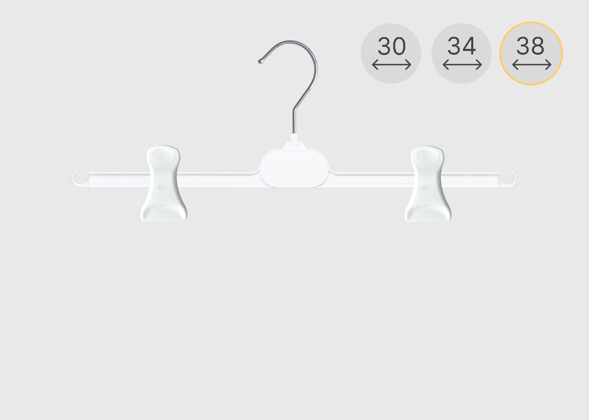 • Длина: 30, 34, 38 • Цвет: черный, белый, серый • Поворотный металлический крючок разных типов • Прищепки 2-х типов - стандарт и люкс • Цвет клипс: серебро, золото • Логотипы