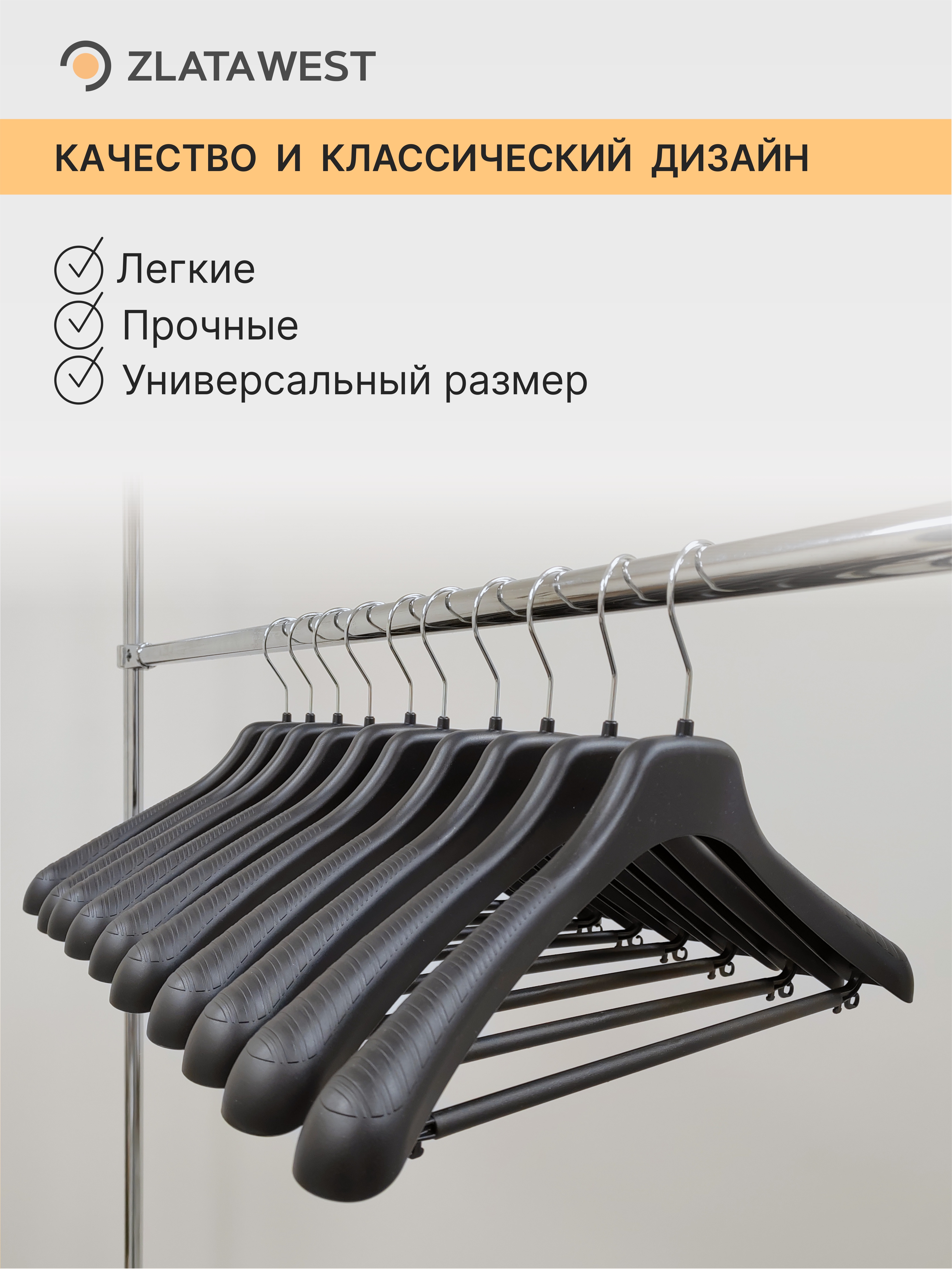 Вешалка подходит для всех видов верхней одежды, в том числе и для тяжелой одежды (костюмы, куртки, пальто). Вариант вешалки с перекладиной подходит для комплектов одежды.
