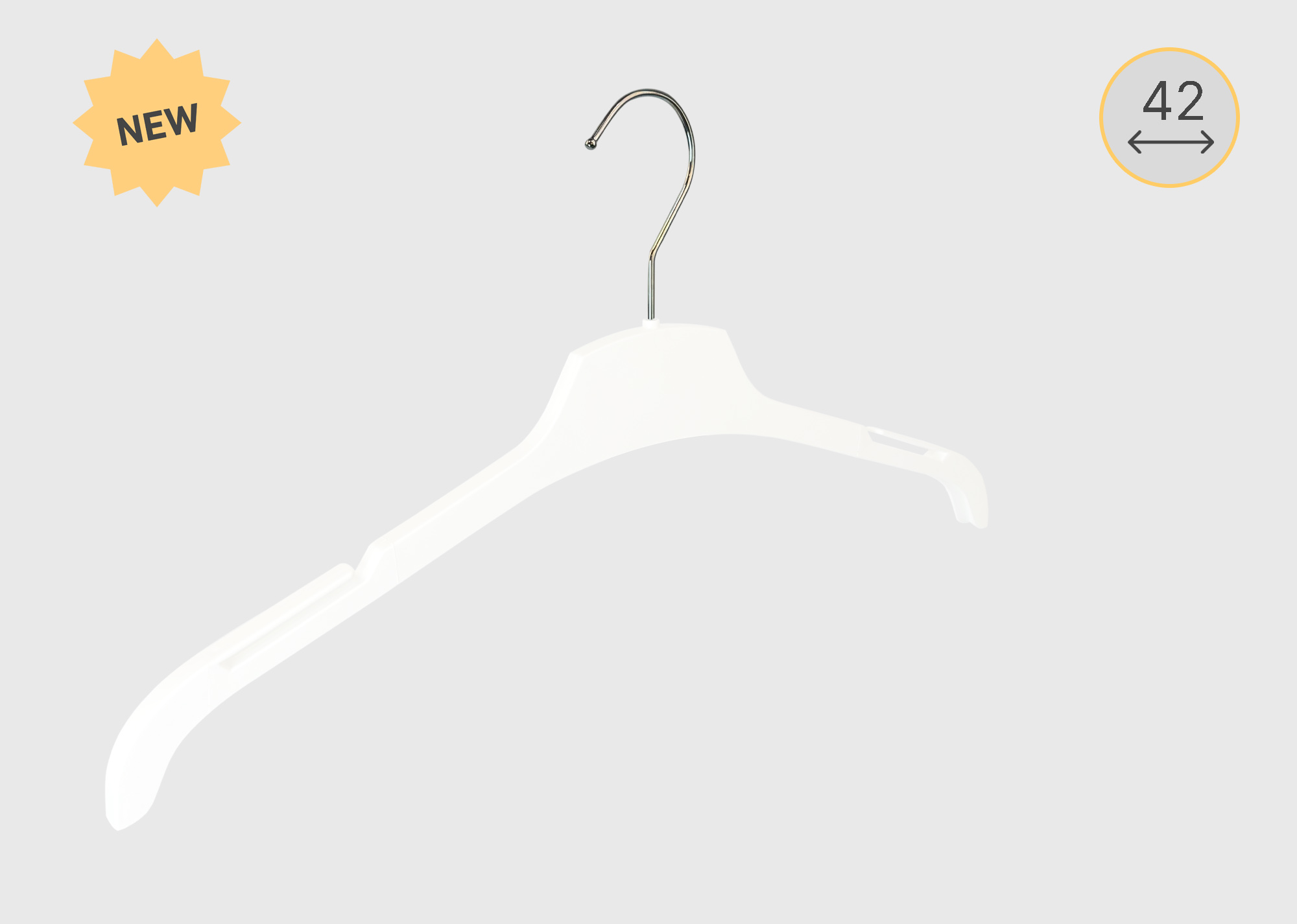 Прочные держатели для бретелей снабжены ребром жесткости и не ломаются. Округлая форма плеча не деформирует одежду.