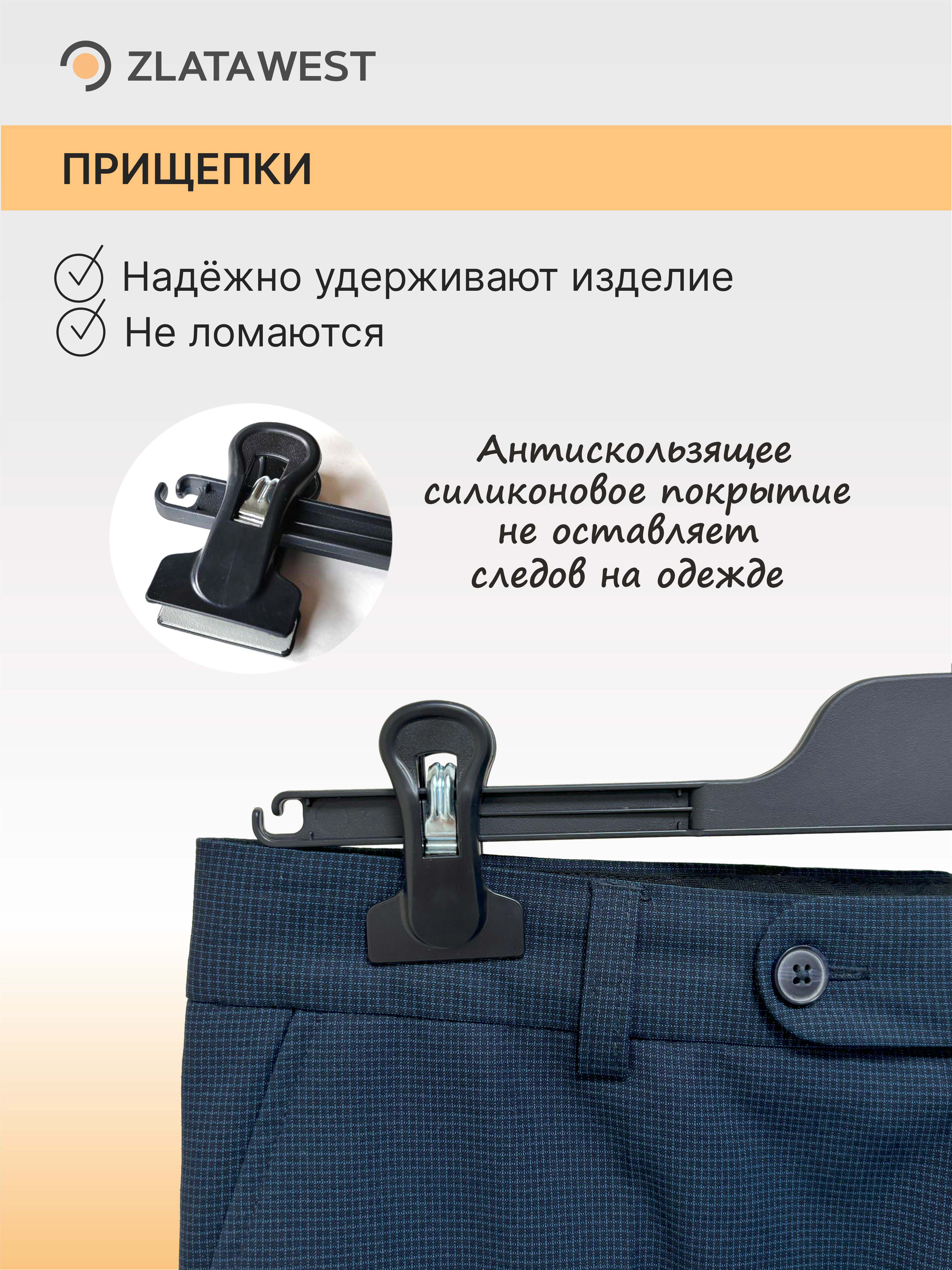 Вешалка для брюк и юбок с пластмассовыми прищепками и металлическими зажимами для прищепок. Возможны 2 вида прищепок-стандарт и люкс, и 2 вида зажимов-серебро и золото.