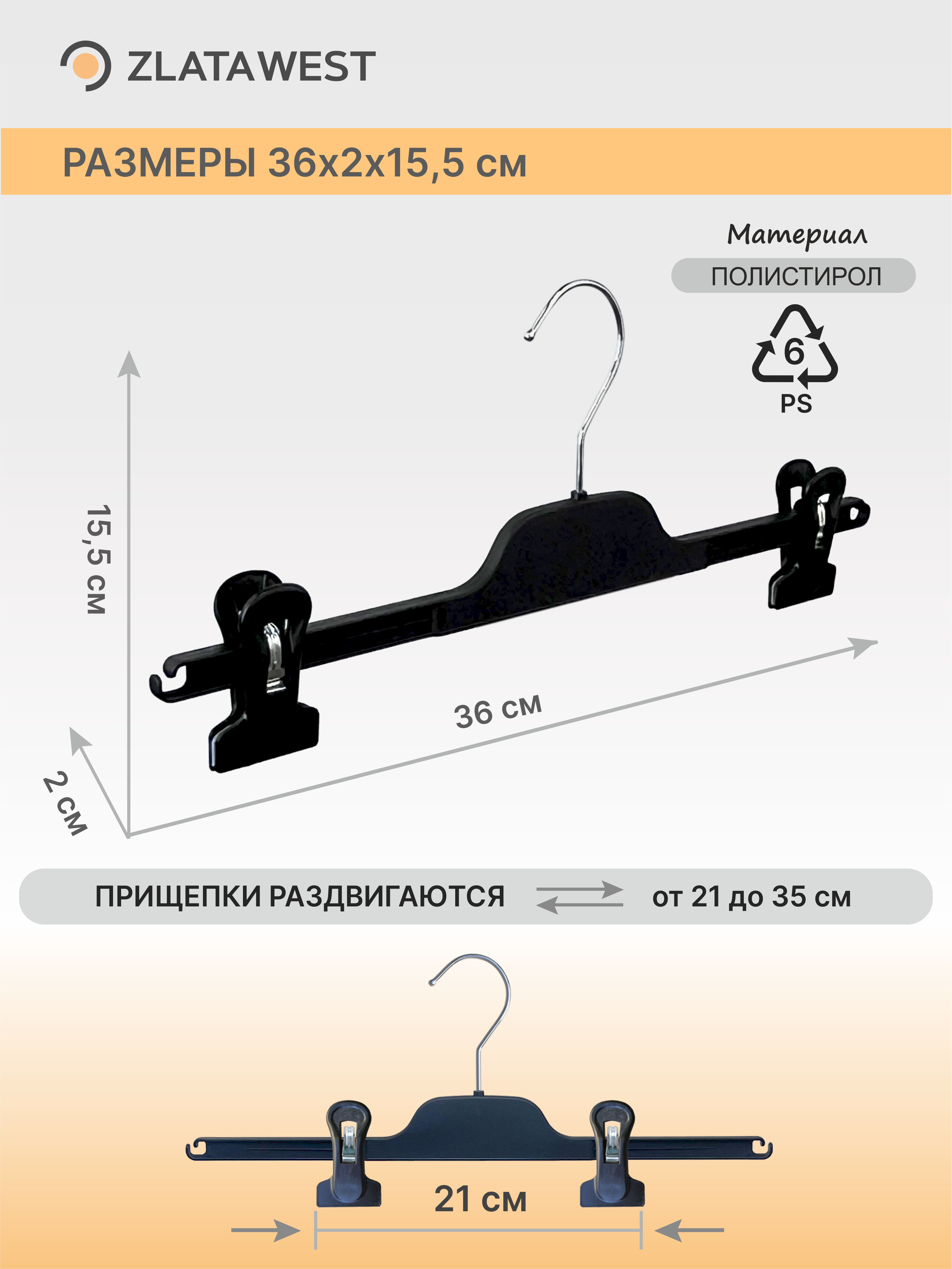 • Длина: 36 • Цвет: черный, белый, серый • Поворотный металлический крючок разных типов • Прищепки 2-х типов - стандарт и люкс • Цвет клипс: серебро, золото • Логотипы
