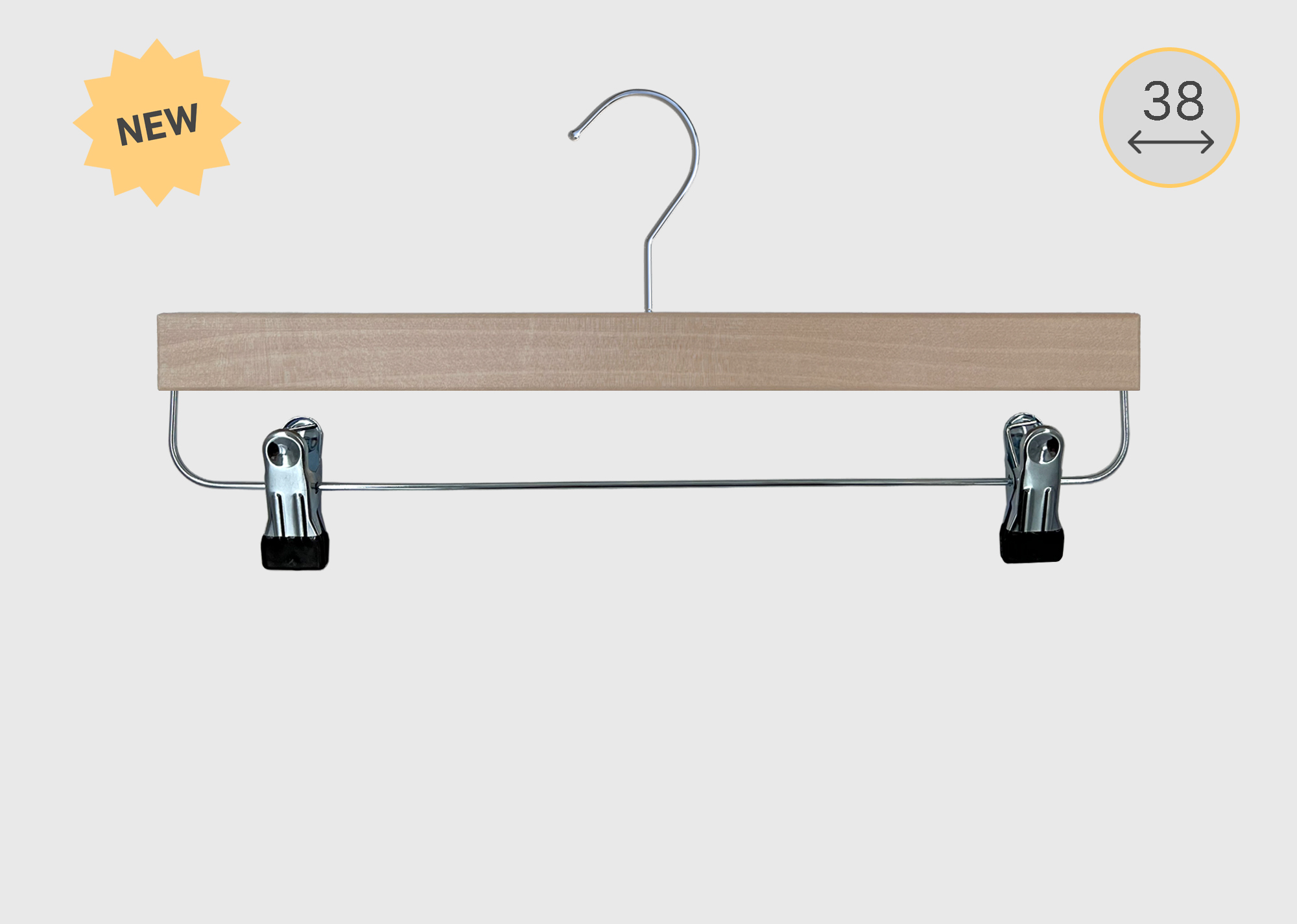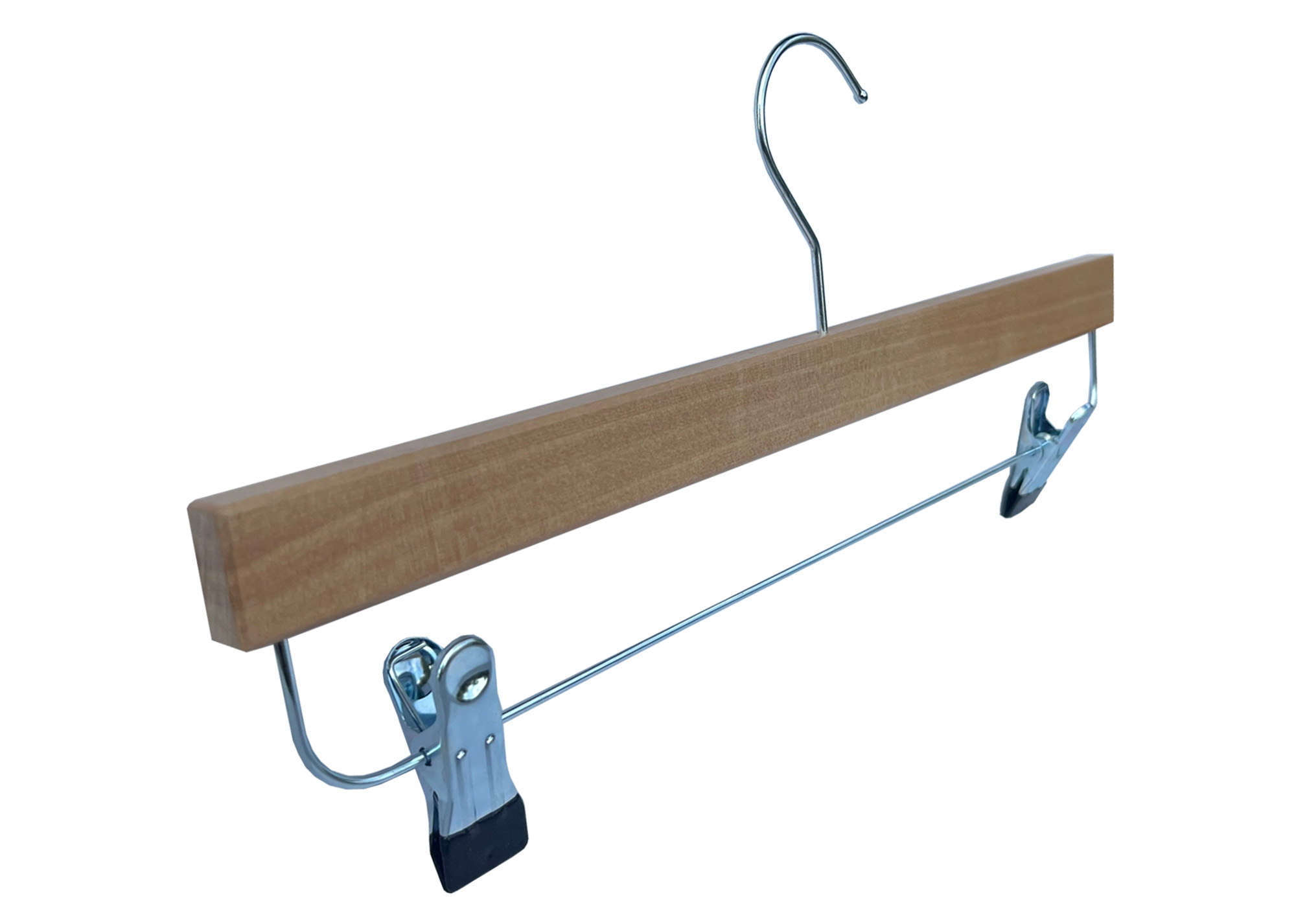 Вешалка для брюк и юбок из натурального дерева, с металлической фурнитурой.